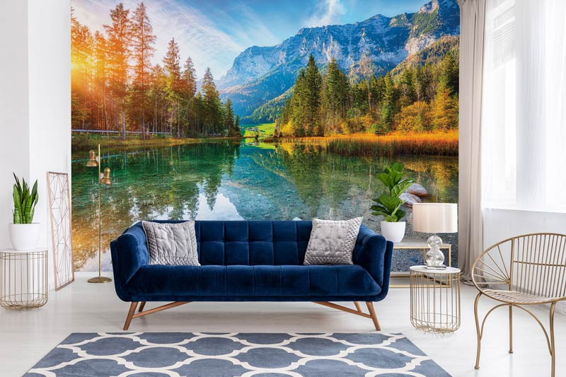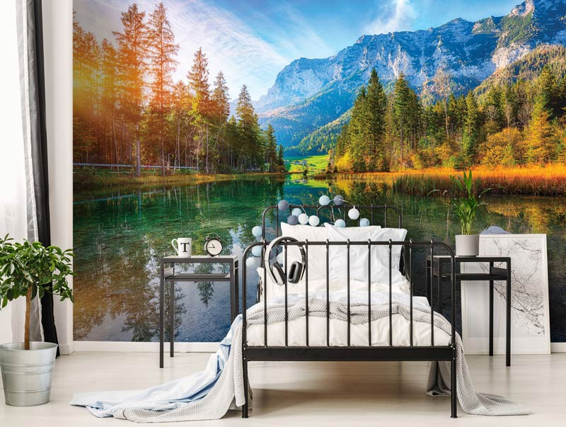 Die Fototapete lässt sich einfach auf Maß bestellen. Geben Sie die gewünschten Maße ein und wählen Sie den Teil des Bildes aus, der am besten zu Ihrer Wand passt. Dank des gestochen scharfen Drucks kommen die Details von Wasser, Himmel und Bergen wunderbar zur Geltung. Verwandeln Sie Ihren Raum in eine friedliche Oase mit der einzigartigen Pracht des Sonnenuntergangs am Hintersee.