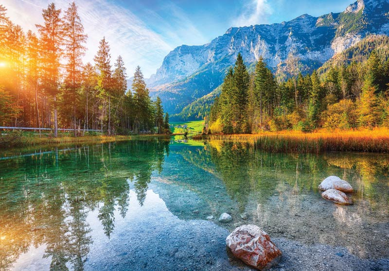 Holen Sie sich die ruhige Schönheit eines Sonnenuntergangs am Hintersee mit dieser atemberaubenden Fototapete in Ihr Interieur. Der malerische Bergsee reflektiert die warmen Farben des Abendhimmels, umgeben von majestätischen Bergen und üppiger Natur. Diese Fototapete schafft eine beruhigende und idyllische Atmosphäre in jedem Raum, perfekt für das Wohnzimmer, Schlafzimmer oder Büro.