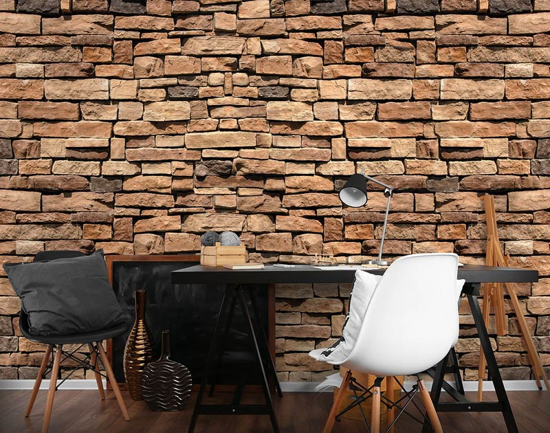 Die Fototapete Steinwand schafft einen industriellen Look und ist die perfekte Ergänzung für jeden Raum.