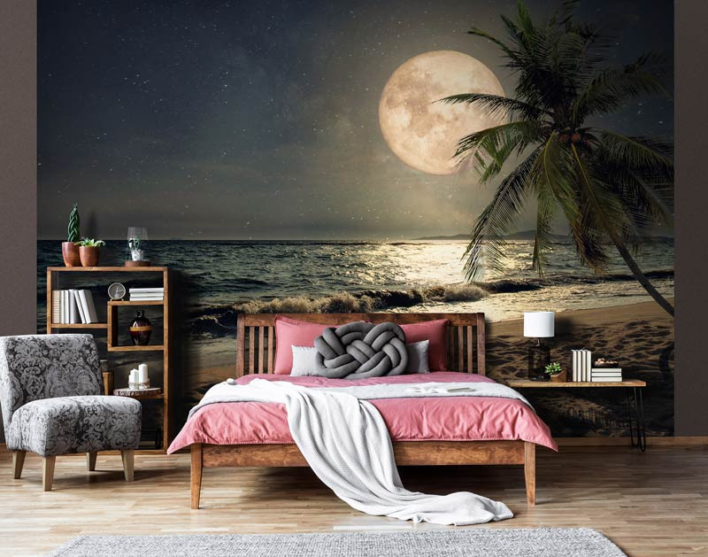 Fototapete Vollmond über dem Strand ist ein echter Hingucker und ist die perfekte Ergänzung für jeden Raum.