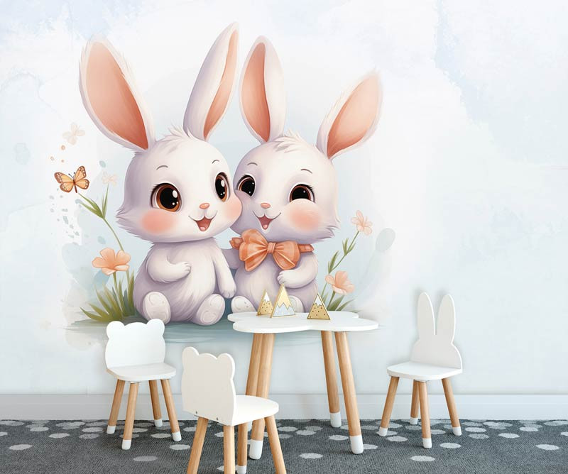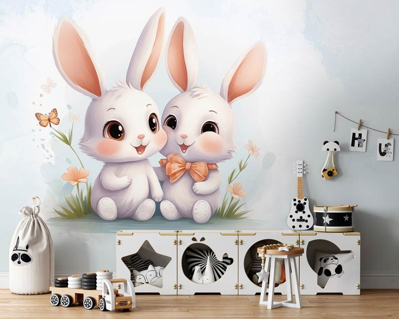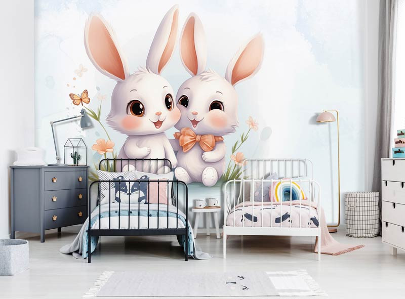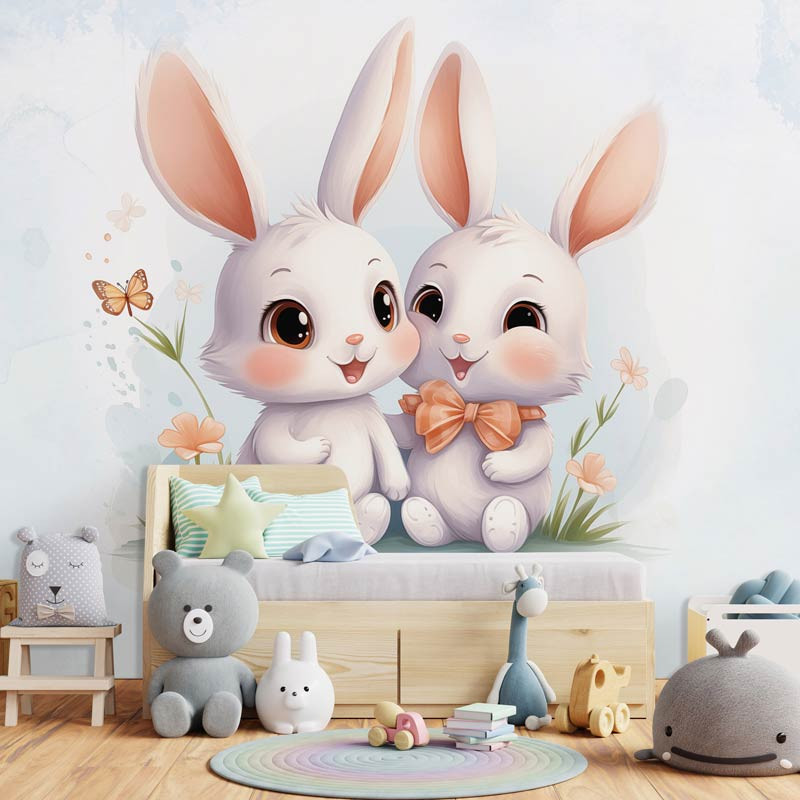 Bringen Sie mit der Fototapete Sweet Bunnies einen Hauch von Sanftheit und Charme in das Zimmer Ihres Babys oder Kinderzimmers. Diese Fototapete zeigt niedliche Häschen in einer verträumten Umgebung, perfekt, um eine ruhige und liebevolle Atmosphäre zu schaffen. Ideal für Eltern, die einen warmen, einladenden Raum für ihr Kleines schaffen wollen.