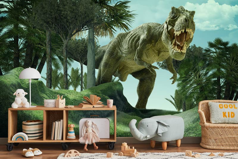 Lassen Sie die Fantasie Ihrer Kinder mit unserer Fototapete T-Rex zum Leben erwachen. Verwandeln Sie das Kinderzimmer in ein prähistorisches Wunderland voller mächtiger Dinosaurier und geben Sie ihnen einen Raum, in dem sie spielen und träumen können.