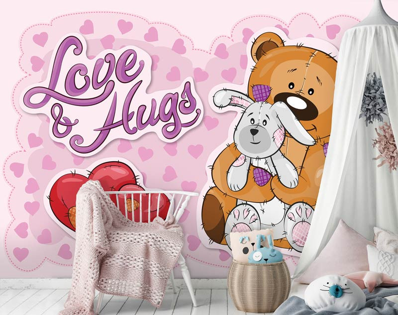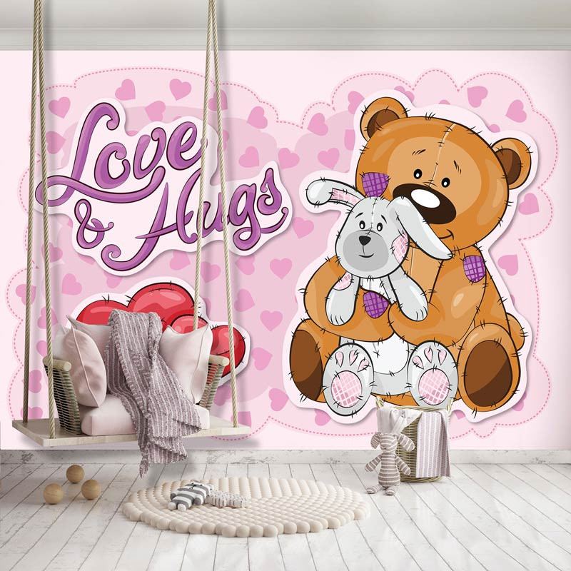 Die Fototapete Teddybär und Kaninchen ist die perfekte Ergänzung für das Baby- oder Kinderzimmer eines jeden Jungen oder Mädchens.