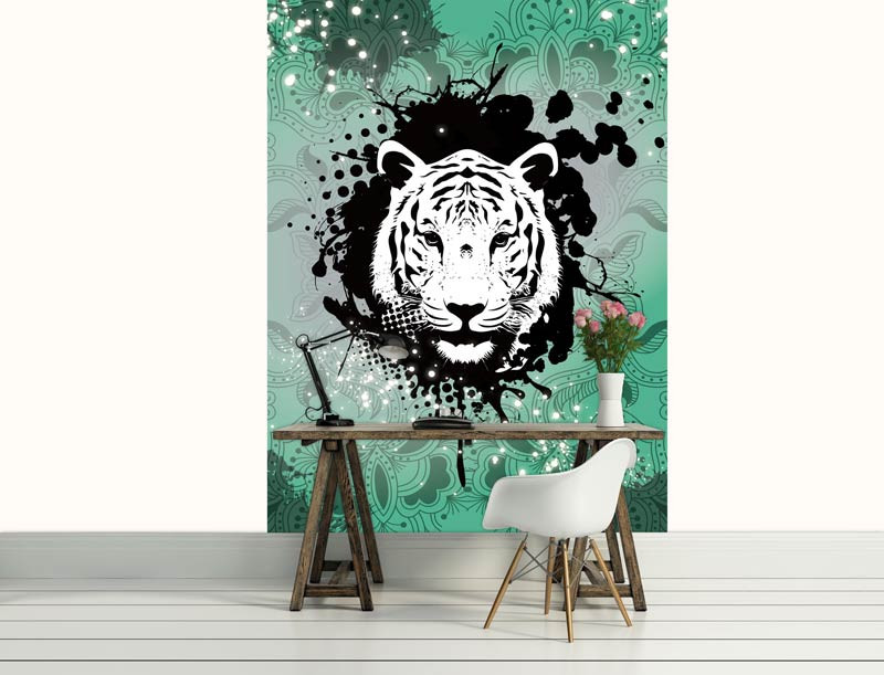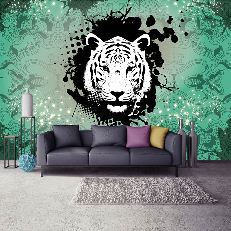 Fototapete eines Tigers in einem schönen, grünen Kunstwerk.