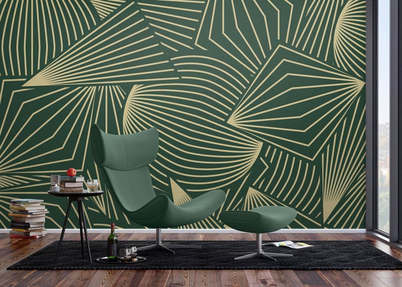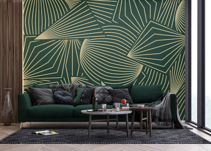 Verleihen Sie Ihrem Interieur einen modernen und stilvollen Look mit der Fototapete Trendy Graphic Patterns. Dieses Design kombiniert klare Linien und geometrische Formen mit subtilen goldenen Akzenten, was einen modernen und dynamischen Effekt erzeugt.
