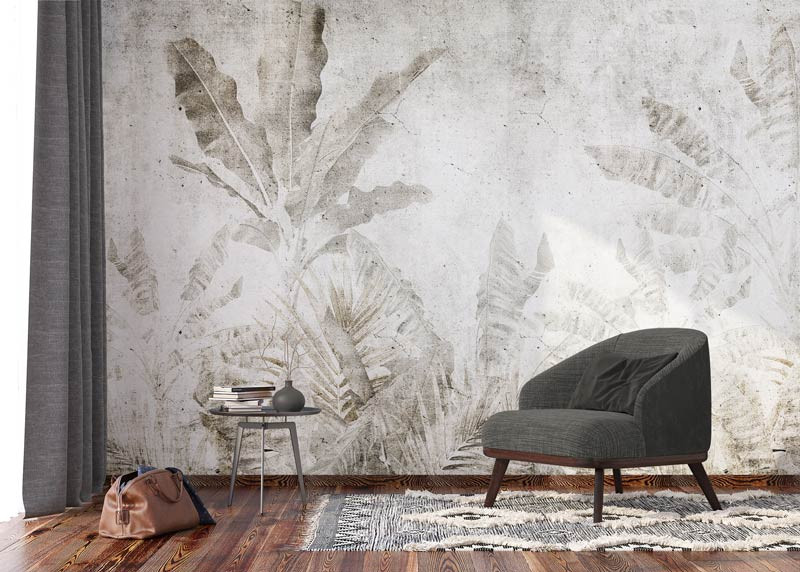 Fototapete Tropical Leaves in Concrete