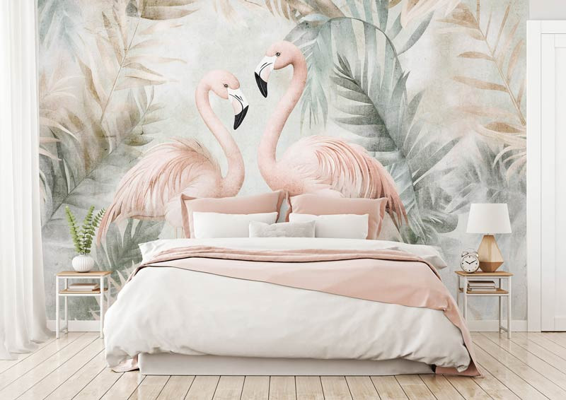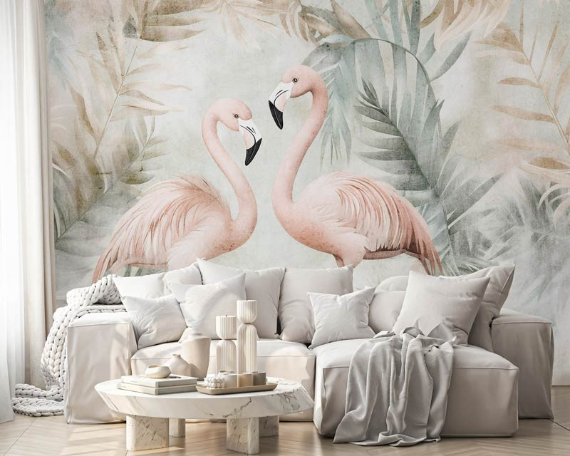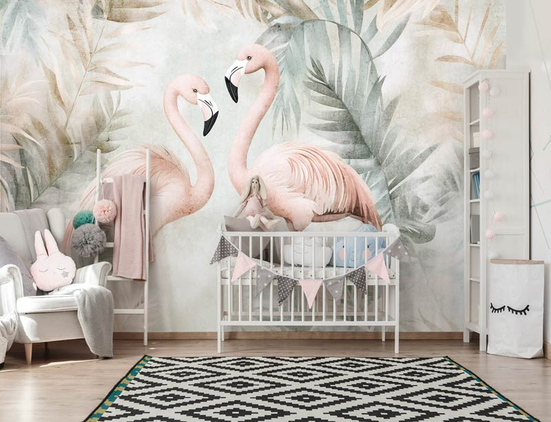 Bringen Sie mit der Fototapete Tropical Flamingos einen Hauch von Tropen in Ihr Interieur. Dieses lebendige Design kombiniert anmutige Flamingos mit üppigen Dschungelblättern und schafft so einen frischen und exotischen Look. Perfekt für das Kinderzimmer, Schlafzimmer oder Wohnzimmer und ein echter Blickfang für Liebhaber tropischer Atmosphären.