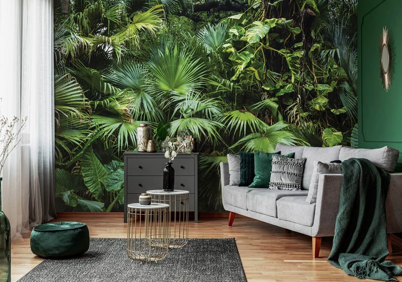 Die tropische Dschungel-Fototapete ist ein echter Hingucker und ist die perfekte Ergänzung für jeden Raum.