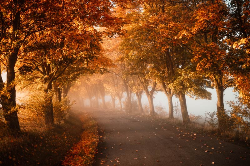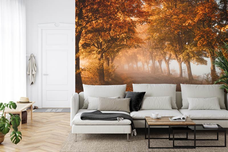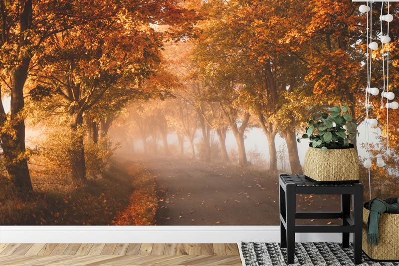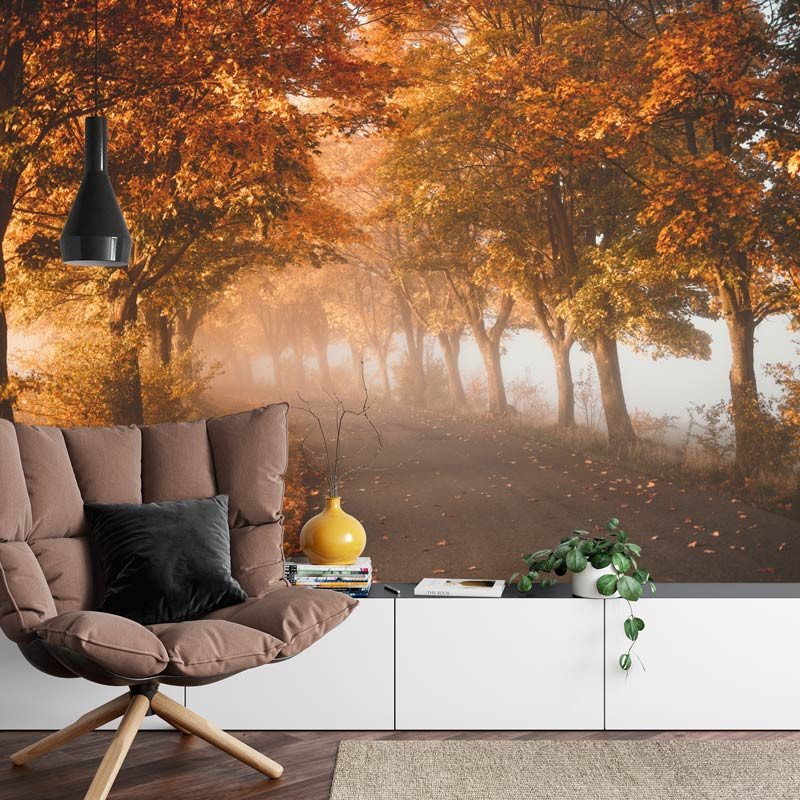 Schaffen Sie eine bezaubernde Atmosphäre in Ihrem Wohnzimmer, Schlafzimmer oder Büro mit der Fototapete Tunnel aus Herbstbäumen. Lassen Sie sich von den warmen Farben des Herbstes und dem beruhigenden Anblick eines Tunnels aus Bäumen verzaubern, der in einen weichen Dunst aus Herbstblättern gehüllt ist. Erleben Sie die Ruhe und Gelassenheit dieser bezaubernden Szene und lassen Sie sich in eine Welt der Ruhe und Schönheit entführen.