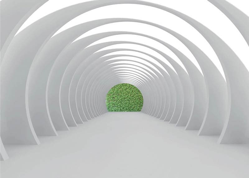 Fühlen Sie sich von 3D-Effekten eines Tunnels umgeben, der Sie ins Grüne führt. Die helle Druckqualität vermittelt ein lebendiges Gefühl, als ob Sie durch den Tunnel selbst gehen würden.
