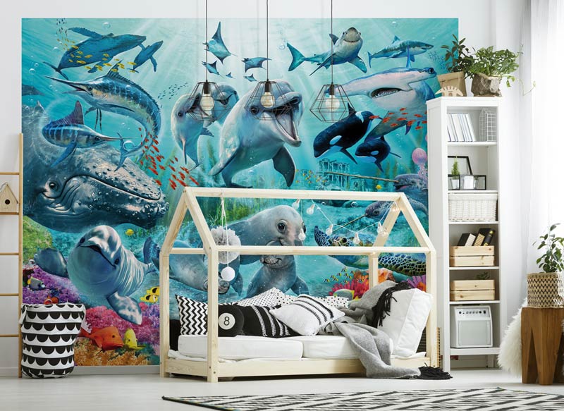 Mit dieser farbenfrohen 3D-Fototapete verwandelt sich das Zimmer Ihres Kindes in eine magische Unterwasserwelt. Das fantastische blaue Wasser kontrastiert mit den leuchtenden Korallen und den atemberaubenden Fischarten. Die Fototapete zeigt Wale, Robben, Delfine und Haie in Hülle und Fülle!