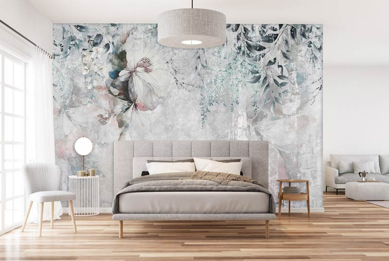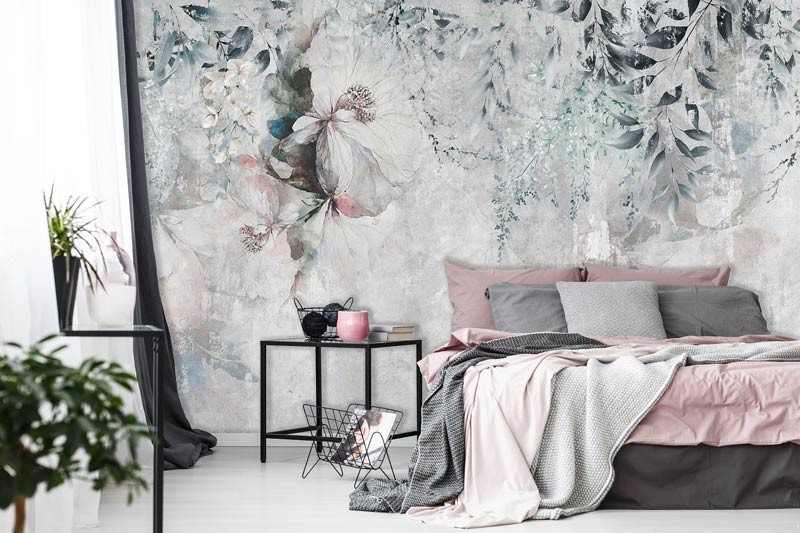 Wählen Sie die Fototapete Lush Flowers and Plants on Concrete Texture, um einen auffälligen Kontrast zu schaffen. Die farbenfrohen Blumen und Pflanzen heben sich wunderbar von der rauen Betonstruktur ab und bilden eine Kombination aus Natur und Industriedesign.