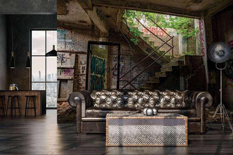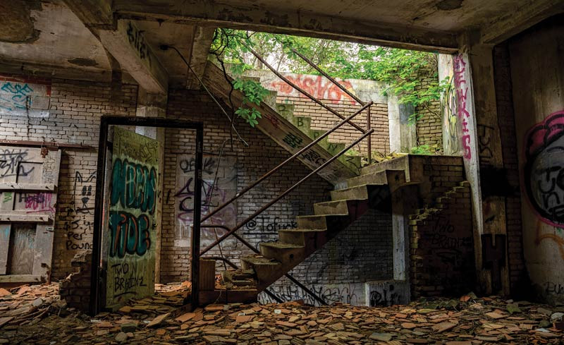 Verwandeln Sie Ihre langweilige Wand in eine spannende Kulisse mit dieser Fototapete eines verlassenen Treppenhauses. Die Fototapete zeigt ein verwittertes Treppenhaus, das eine Geschichte von vergangenem Ruhm und Geheimnis erzählt.