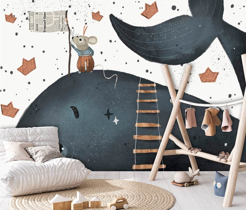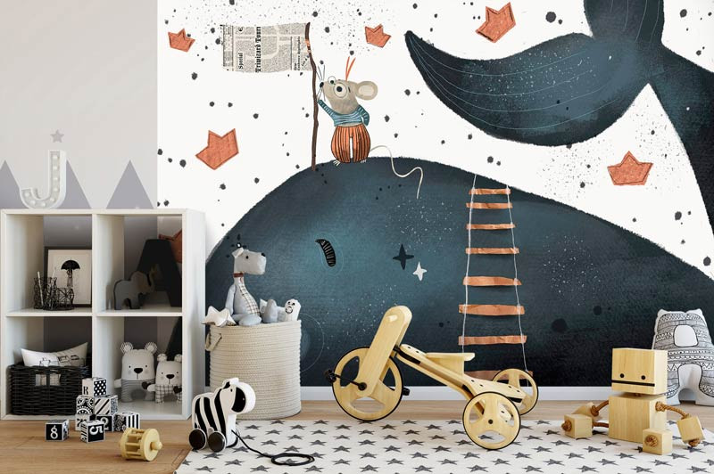 Die Wal und Maus Fototapete ist ein echter Hingucker und schafft einen einzigartigen Look im Kinderzimmer.
