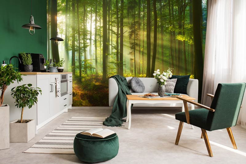 Diese Fototapete ist von hoher Qualität und bietet eine lebendige Darstellung von Farben und Details, die jedes Blatt und jeden Lichtstrahl messerscharf erscheinen lassen. Tiefe Grüntöne und warme Brauntöne werden wunderschön wiedergegeben und verleihen der Tapete eine realistische und eindringliche Wirkung. Die Fototapete ist anpassbar und auf Vliestapete, Vinyltapete und nahtloser Airtex-Tapete erhältlich, sodass sie perfekt an Ihre Wand passt und die natürliche Schönheit des Waldes in jedem Detail widerspiegelt.