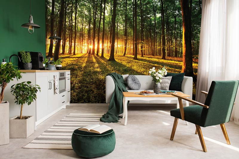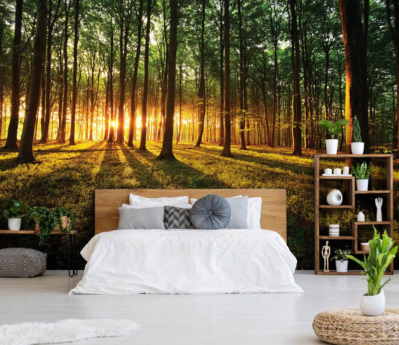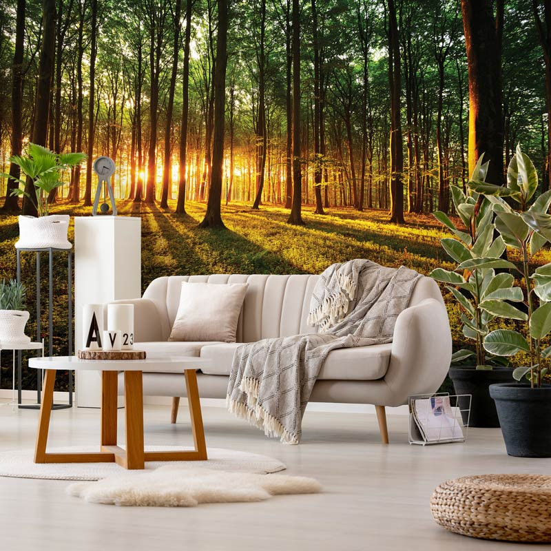 Die Wald Fototapete ist ein echter Blickfang im: Wohnzimmer, Schlafzimmer, Hobbyraum, Küche, Flur, Büro oder jedem anderen Raum.