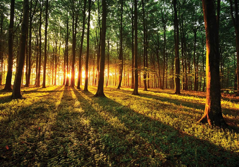 Fototapete Wald mit Sonnenlicht
