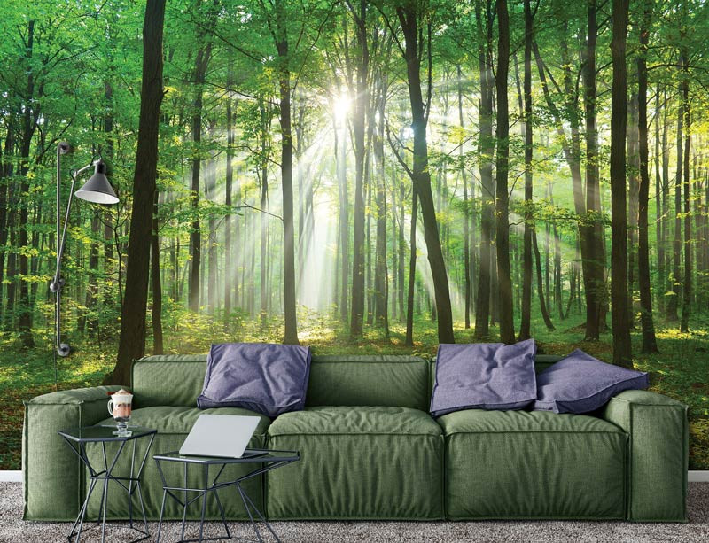 Fototapete Wald mit Sonnenstrahlen