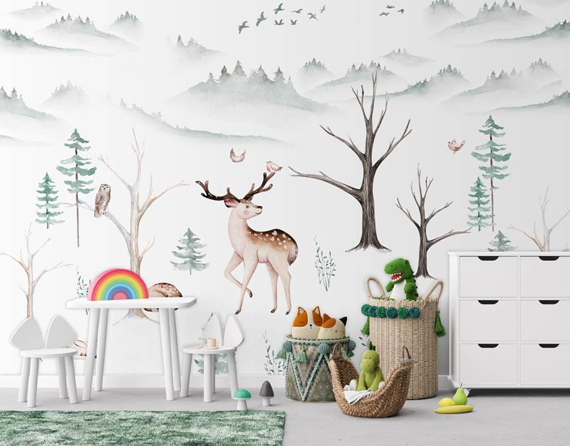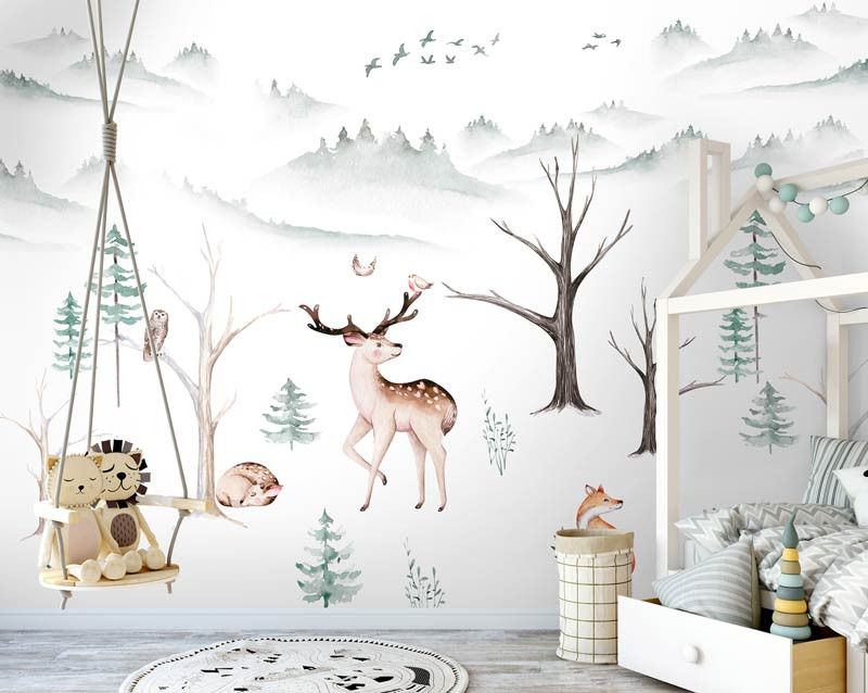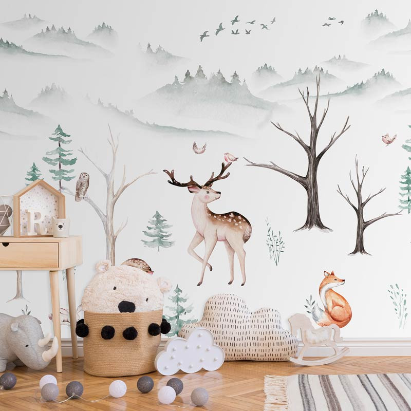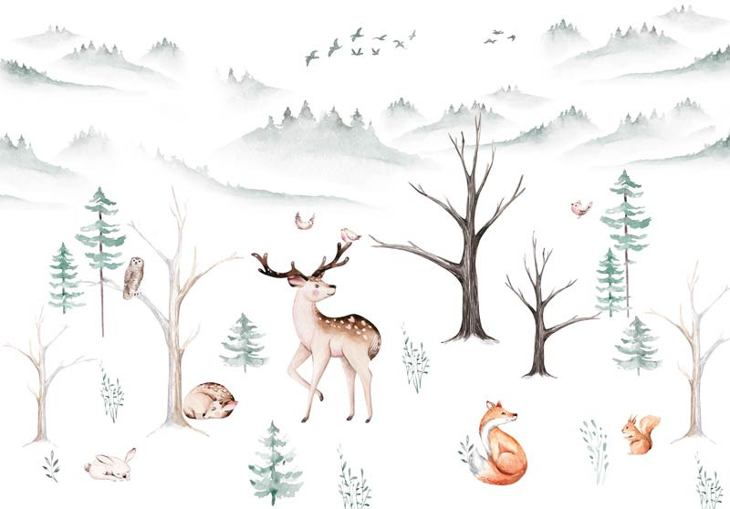 Verwandeln Sie Ihr Interieur mit unserer Fototapete Waldtiere Abenteuer und entdecken Sie die magische Welt des Waldes.