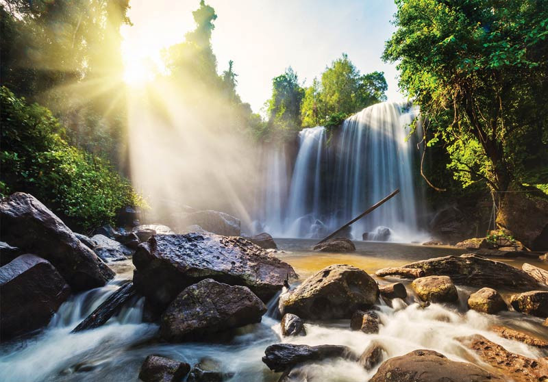 Fototapete Walderlebnis mit atemberaubendem Wasserfall