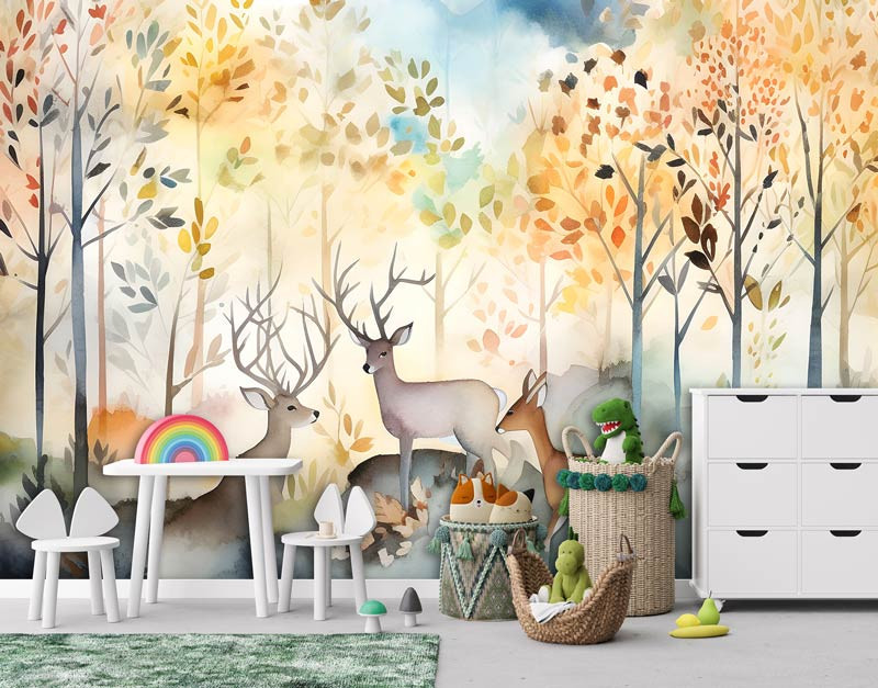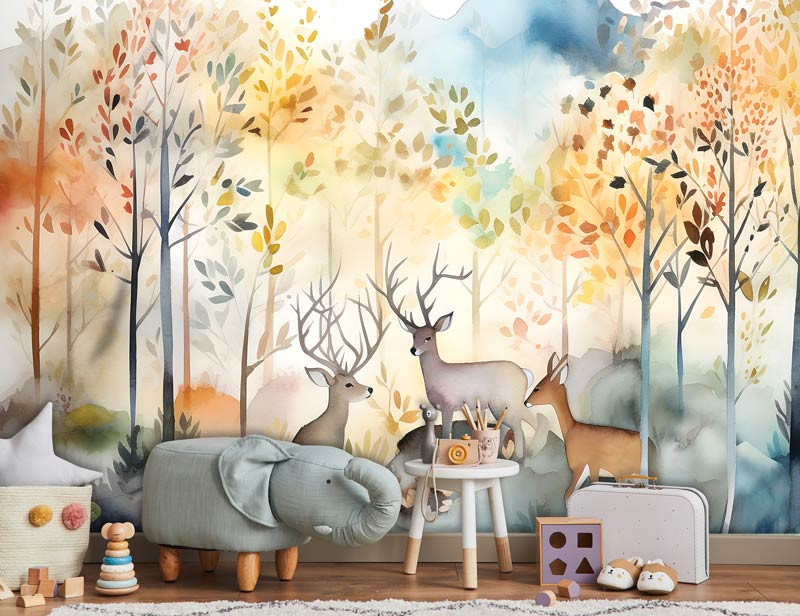 Holen Sie sich den natürlichen Charme des Waldes ins Haus mit unserer Fototapete Waldtiere Aquarell. Lassen Sie sich von den wunderschönen Aquarellbildern von Waldtieren inspirieren und schaffen Sie eine Atmosphäre der Ruhe und Gelassenheit in jedem Raum, perfekt für das Kinderzimmer.