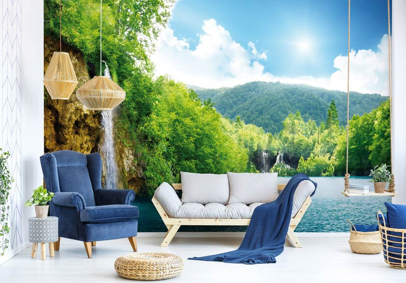 Vlies-Fototapete von einer himmlischen Landschaft mit einem schönen Wasserfall.