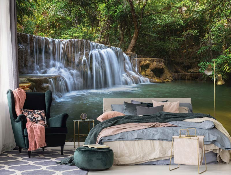 Die Fototapete Wasserfall ist ein echter Blickfang im: Wohnzimmer, Schlafzimmer, Hobbyraum, Küche, Flur, Büro, Gastfreundschaft oder jedem anderen Raum.