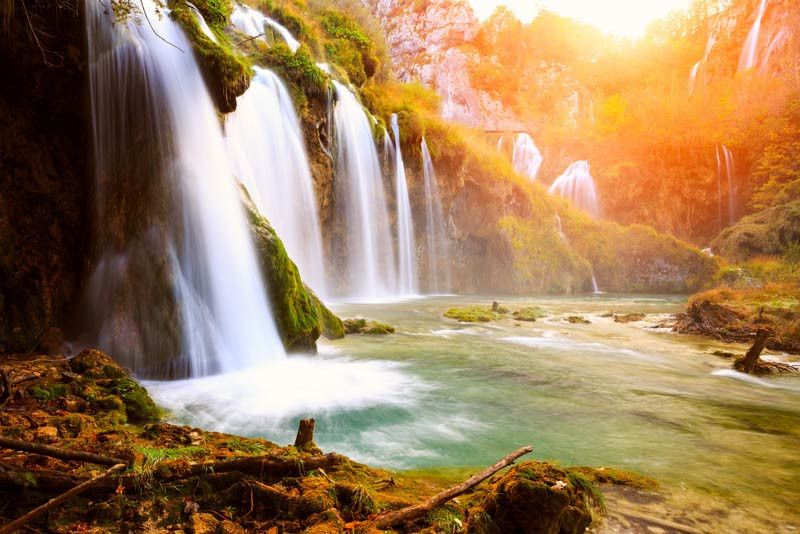 Treten Sie mit der Fototapete Waterfalls Harmony in eine Welt der ruhigen Schönheit ein. Erleben Sie das perfekte Gleichgewicht von Kraft und Anmut, wenn sich mehrere Wasserfälle durch eine üppige Landschaft schlängeln und sich das Geräusch von plätscherndem Wasser harmonisch mit dem beruhigenden Flüstern der Natur verbindet.