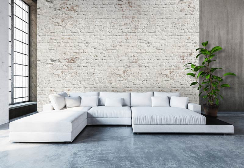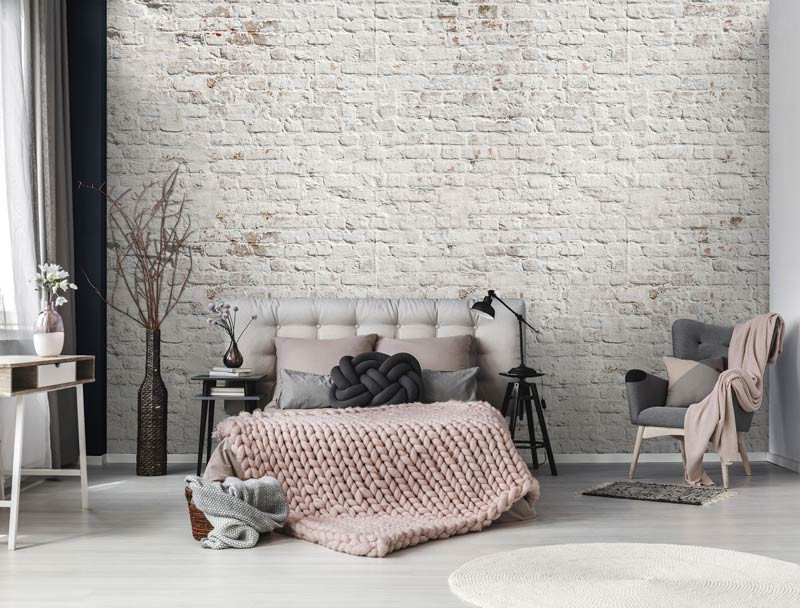 Weiße Backstein-Fototapete ist ein echter Blickfang und schafft einen industriellen Look in jedem Raum.