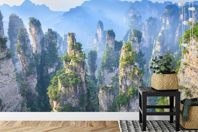 Lassen Sie sich mit unserer Fototapete Zhangjiajie National Forest Park von der majestätischen Pracht des Zhangjiajie National Forest Park verzaubern. Dieses atemberaubende Design bringt die beeindruckende Schönheit der Natur direkt in Ihr Interieur und verleiht jedem Raum einen Hauch von natürlicher Gelassenheit.