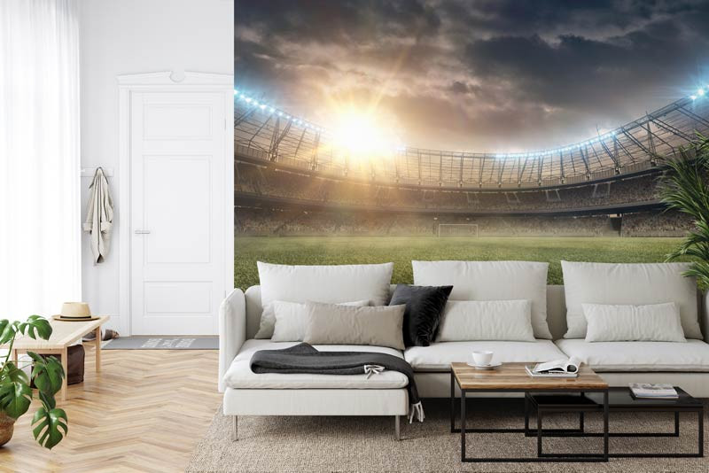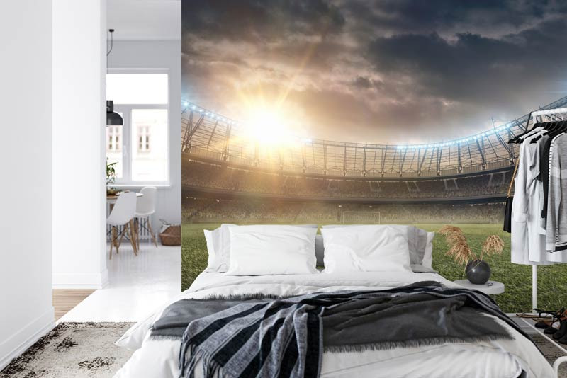 Dieses atemberaubende Design verleiht dem Raum Tiefe und Dimension, so dass es scheint, als würde das Stadion tatsächlich bis an die Wände reichen. Ob im Schlaf- oder Spielzimmer, unsere Fußballstadion 3D-Fototapete wird die Fantasie Ihrer Kinder anregen und ihre Liebe zum Fußball schüren.