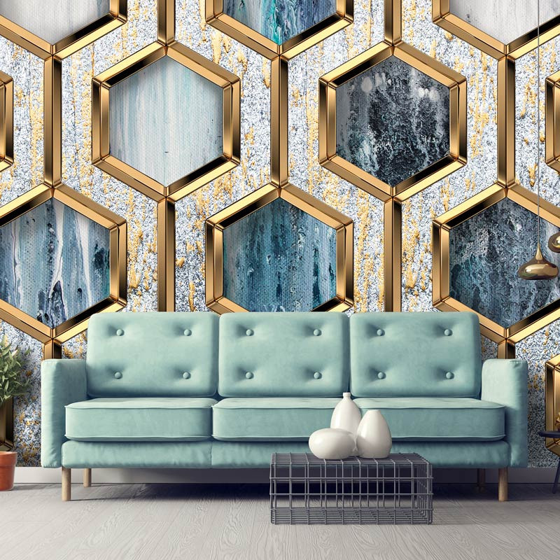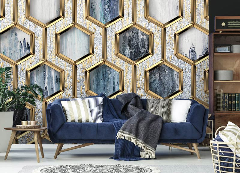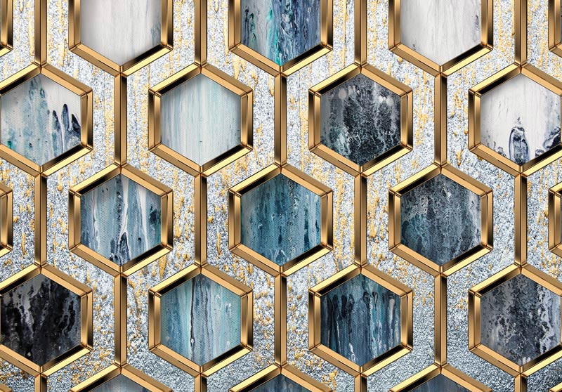 Die Sechseck-Fototapete schafft einen luxuriösen Look und ist die perfekte Ergänzung für jeden Raum.