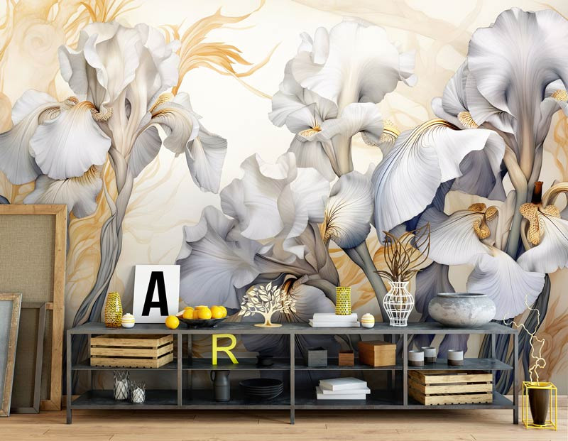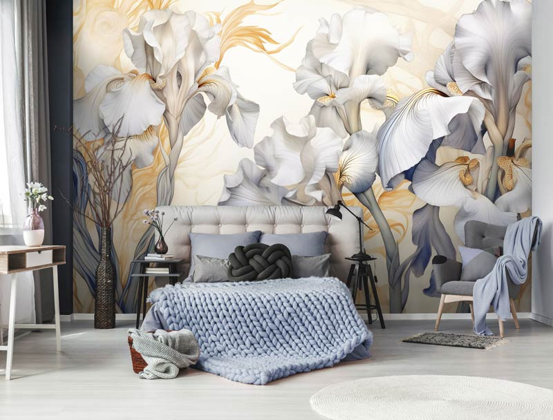 Verwandeln Sie Ihr Interieur mit unserer Fototapete Iris Germanica White Night und genießen Sie jeden Tag den zeitlosen Charme dieser schönen Blumen.