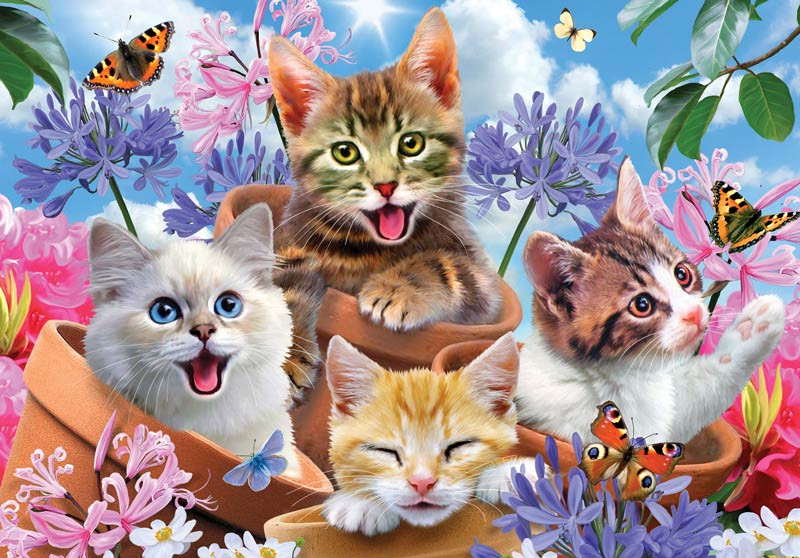 Fototapete Kätzchen und Schmetterlinge | Dolle Beestenboel.