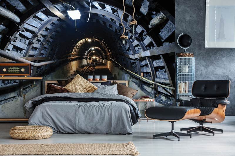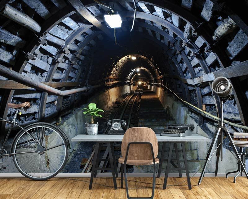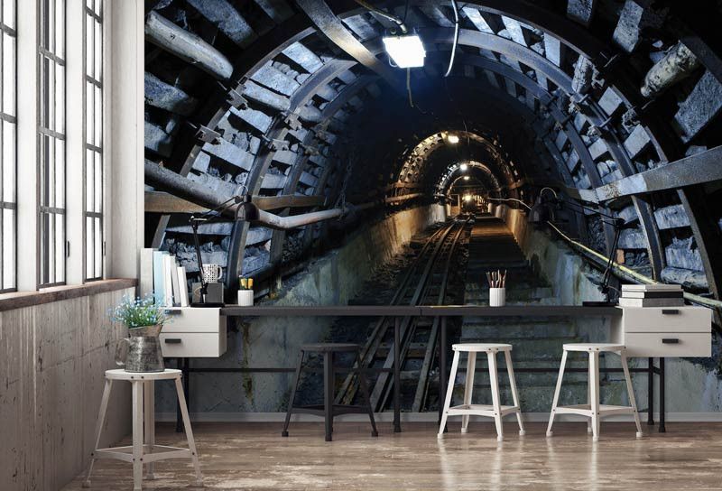 Vliestapete eines Kohlebergwerks. Der lange Stollen erzeugt einen tollen 3D-Effekt!