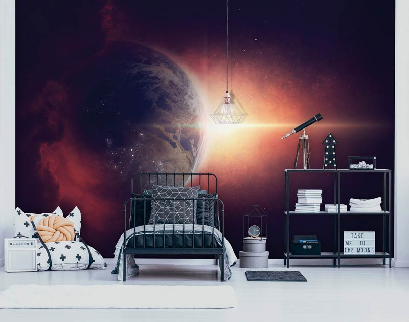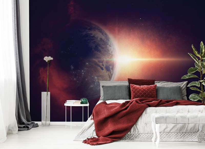 Mit der Fototapete des Planeten Erde aus dem Weltraum gesehen, können Sie Ihr Zimmer in ein wunderschönes Universum verwandeln. Die Tapete stellt unseren Globus mit seinen blauen Ozeanen, grünen Wäldern und braunen Kontinenten realistisch dar.