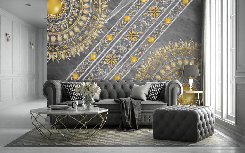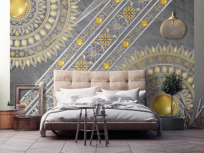 Vlies Fototapete ein schönes Mandala auf einem grauen Hintergrund.