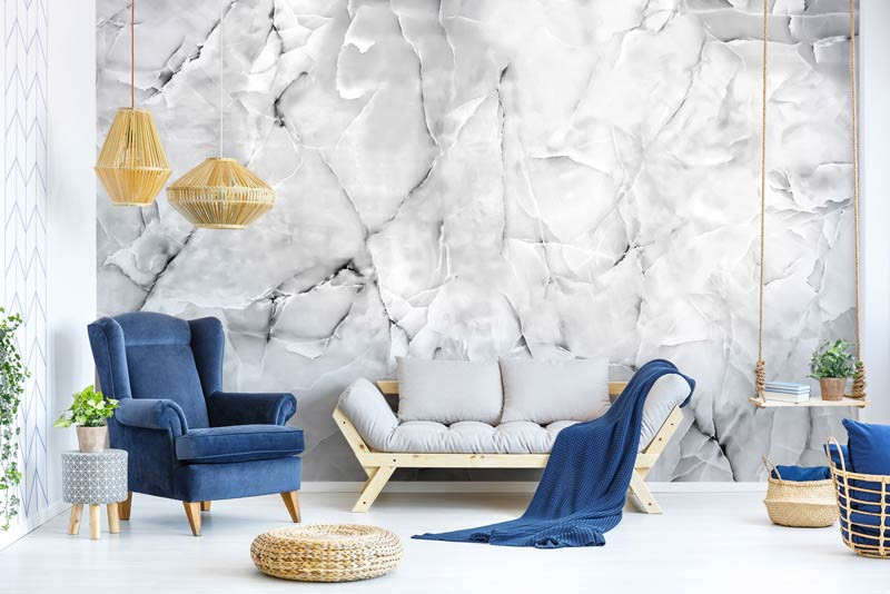 Marmortapeten sind ein echter Blickfang und schaffen einen luxuriösen und industriellen Look im Wohnzimmer, Schlafzimmer oder jedem anderen Raum.