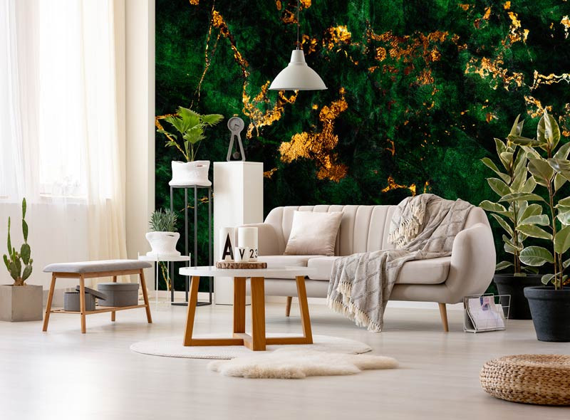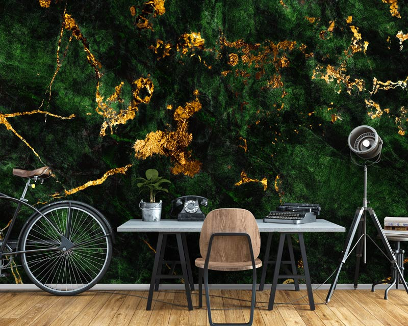 Marmortapete in Grün und Gold