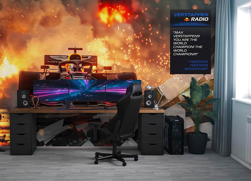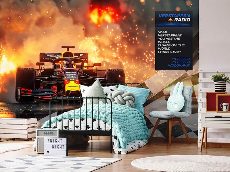 Die Max Verstappen-Tapete ist in drei hochwertigen Materialien erhältlich: Vlies- und Vinyltapeten werden in Bahnen angebracht. Die nahtlose Fototapete von Airtex wird in einem Stück geliefert, was für ein glattes, nahtloses Finish sorgt, und ist außerdem abwaschbar, was die Pflege erleichtert.