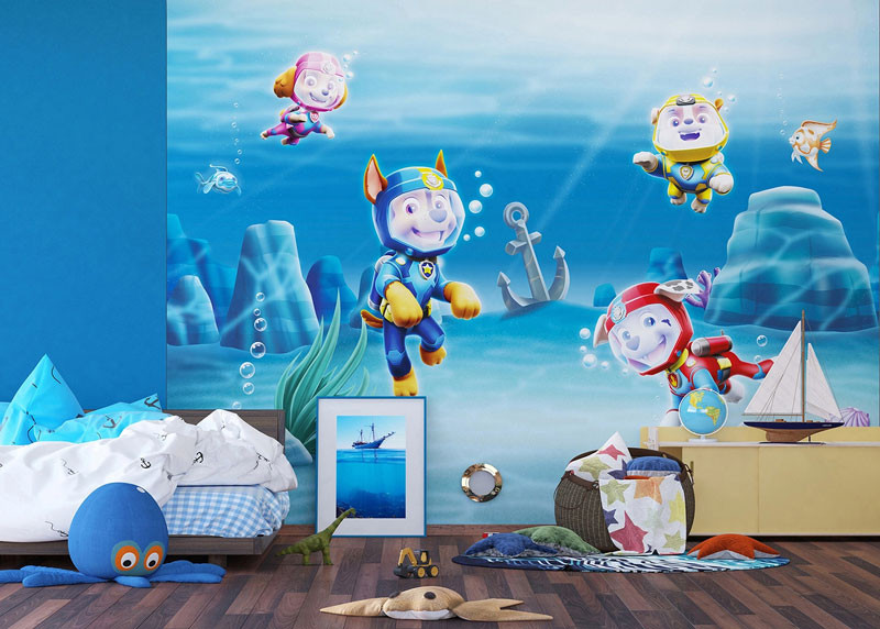 Lassen Sie Ihre Kinder mit dieser schönen Unterwasser-Fototapete in das Abenteuer der Paw Patrol eintauchen!