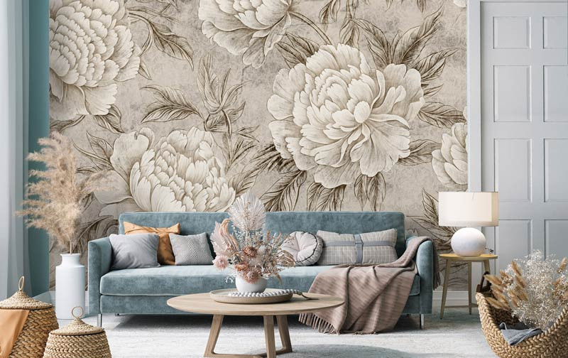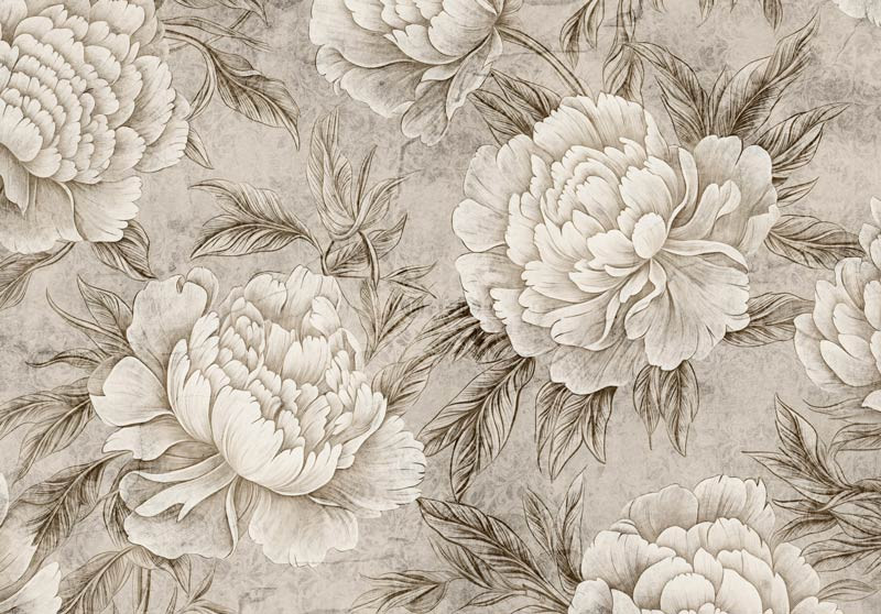 Pfingstrosen im japanischen Stil Fototapete