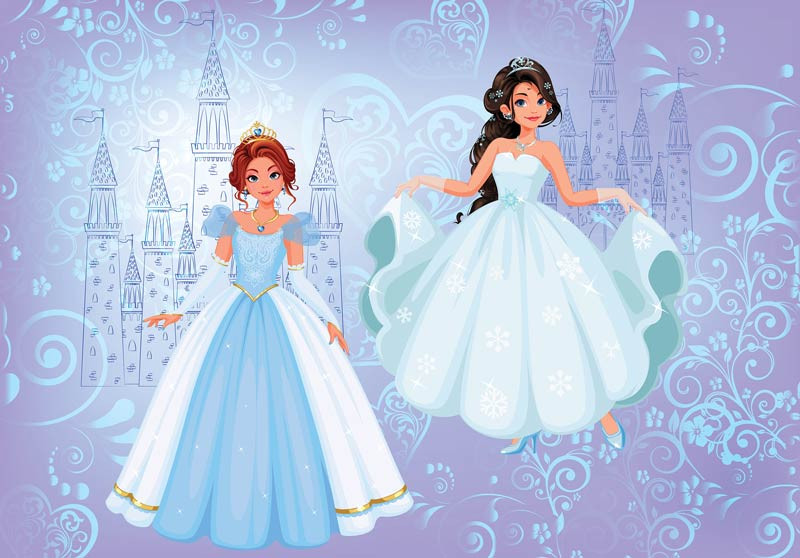Fototapete von 2 schönen Prinzessinnen auf dem Weg zum Schloss für den Ball.