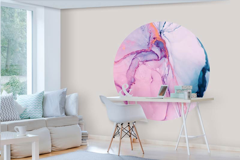 Die Marmortapete Kreis ist ein echter Blickfang und schafft einen einzigartigen Look in jedem Raum.
