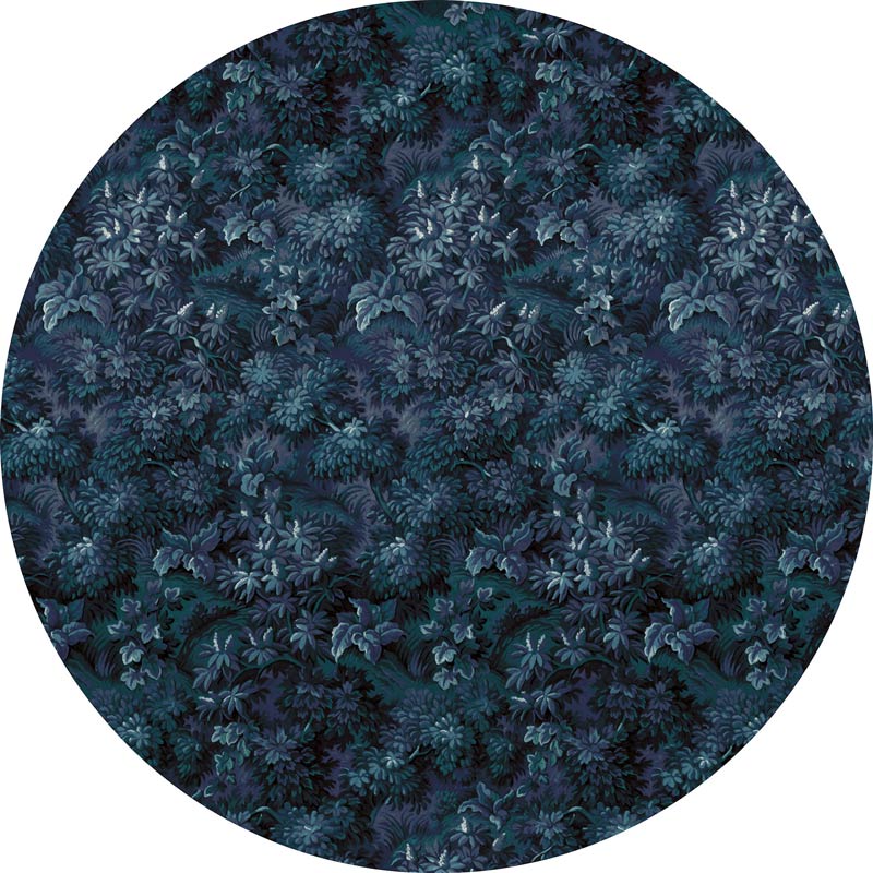 Die nostalgische Gartenlandschaft auf dem Tapetenkreis sieht aus wie ein schlafender Garten im fahlen Mondlicht.