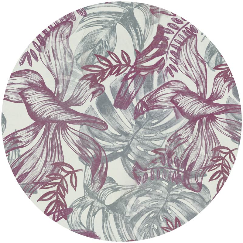 Runde Tapete mit gemalten rosa und grünen Blättern.