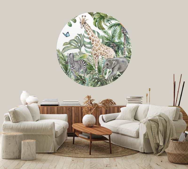 Die Dschungel-Tapete Circle ist ein echter Blickfang und schafft einen einzigartigen Look in jedem Raum.