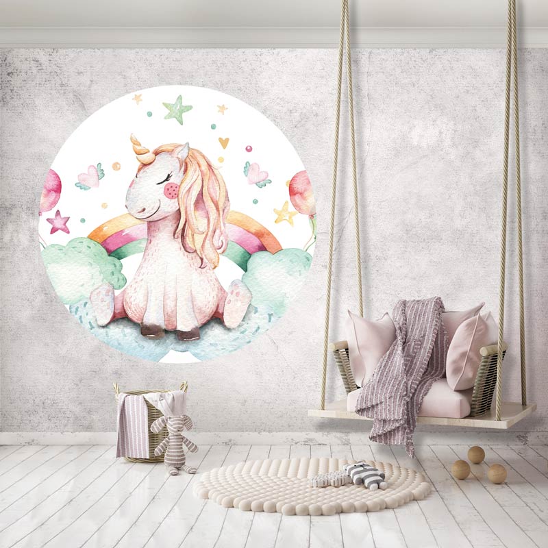 Der Tapetenkreis mit dem Einhorn ist die perfekte Ergänzung für das Kinderzimmer jedes Jungen oder Mädchens.