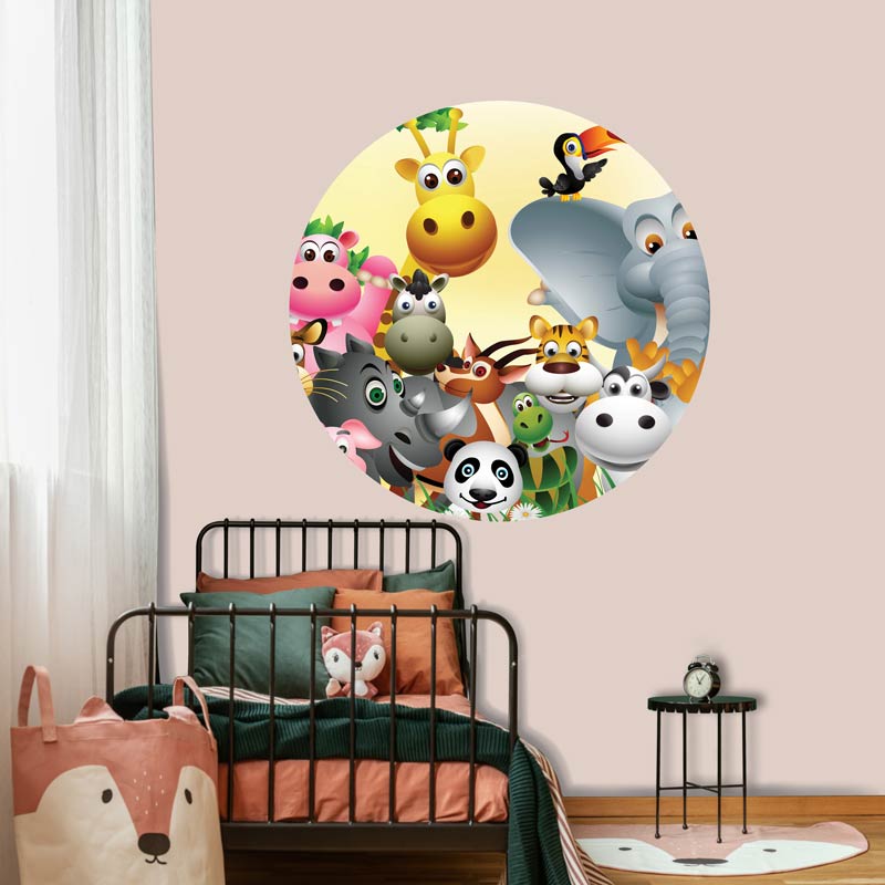 Der Tapetenkreis mit den fröhlichen Tieren ist die perfekte Ergänzung für das Kinderzimmer eines Jungen oder Mädchens.