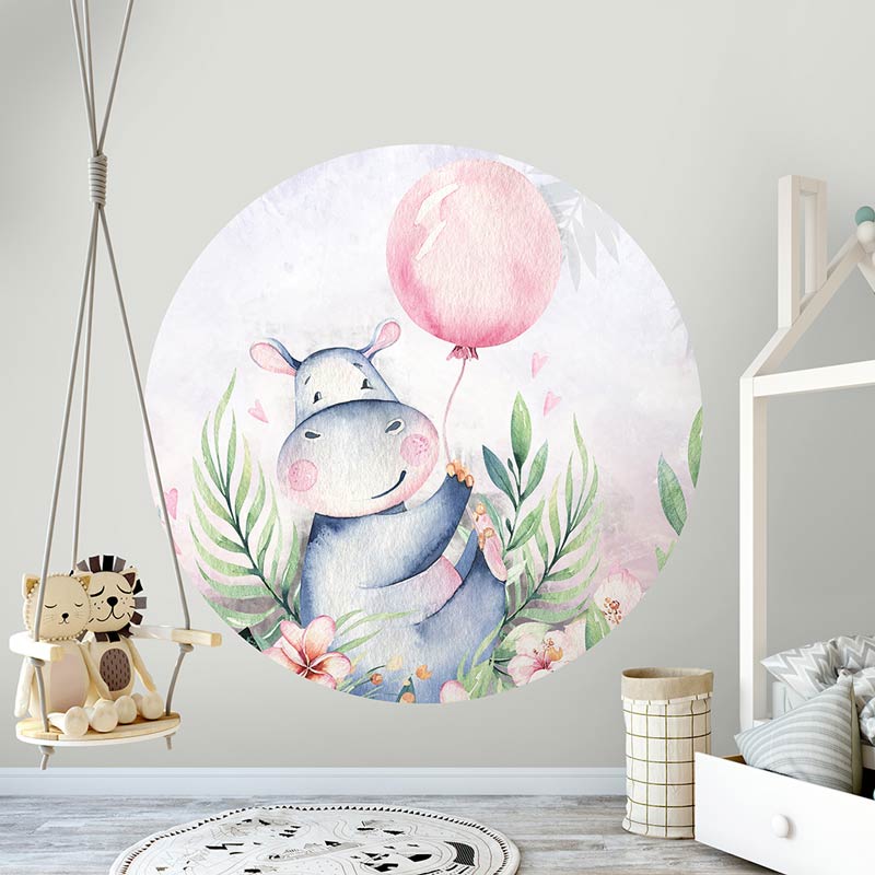 Die Runde Tapete mit dem fröhlichen Nilpferd ist die perfekte Ergänzung für das Kinderzimmer eines Jungen oder Mädchens.